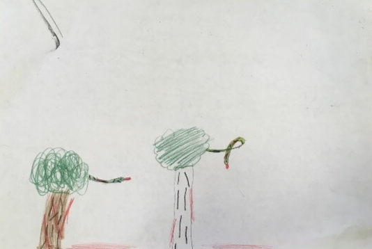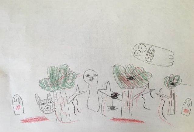 Hierna tekenen de kinderen opnieuw een eng bos.
