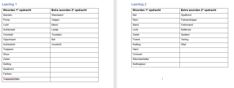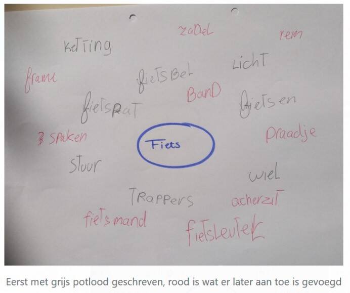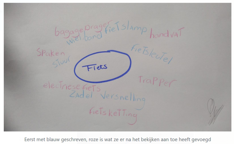 Tijdens het onderzoek is gebleken dat de leerlingen bij de eerste opdracht langer moesten nadenken over hun antwoorden. Daarnaast bedachten de leerlingen relatief makkelijke woorden die te maken hebben met een fiets. Nadat de leerlingen daadwerkelijk fietsen hadden bekeken, kwamen zij veel sneller tot nieuwe woorden en werden er ook moeilijkere woorden toegevoegd aan de lijst (bijvoorbeeld het woord vering).